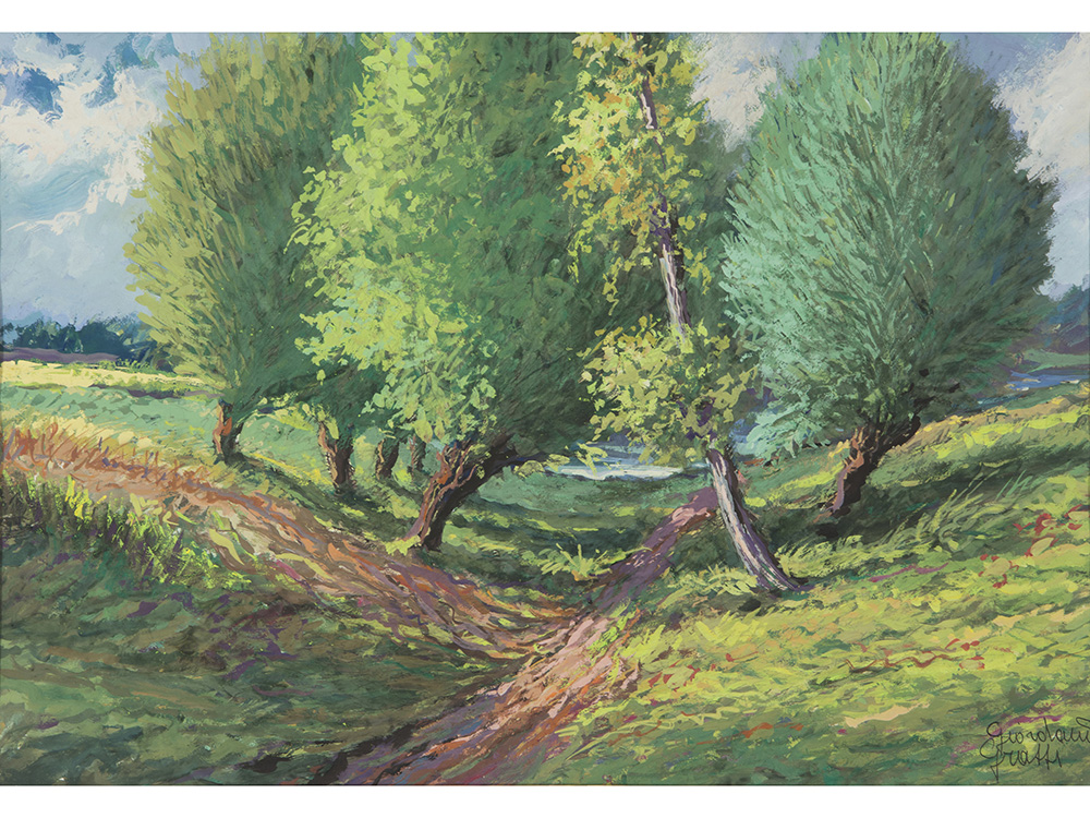 Giordano Grassi (1960-1998) Paesaggio 33x48 cm Tempera su carta