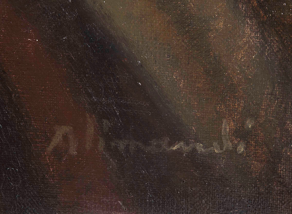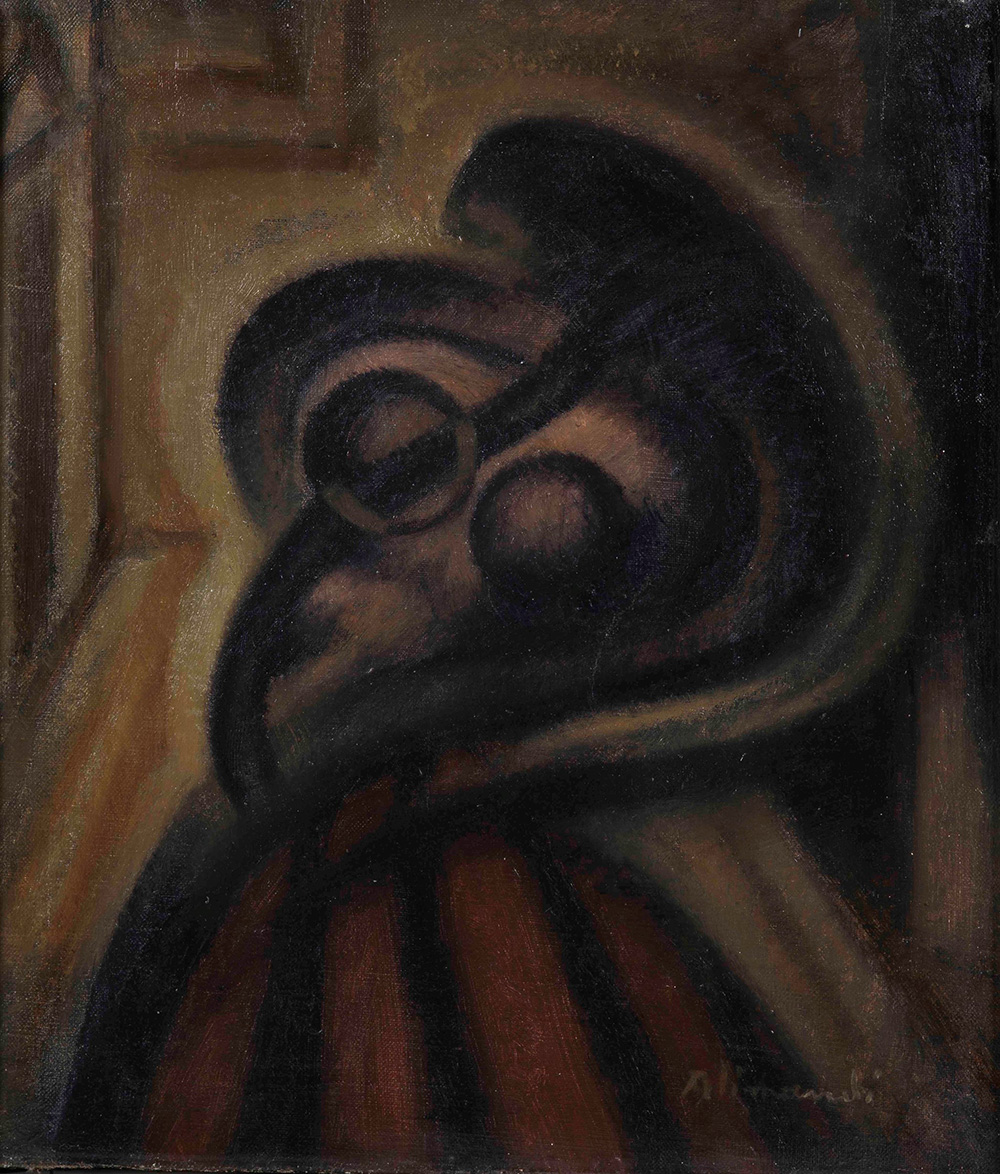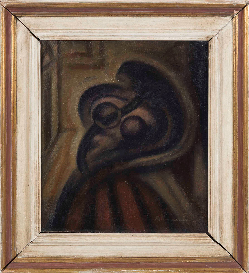 Enrico Allimandi (1910-1984) Sensazione di forma femminile, 1931 olio su tela, cm 49,5x40,4 firmato in basso a destra Provenienza: MART, Museo di Arte Moderna e Contemporanea di Trento e Rovereto, Rovereto Collezione VAF Stiftung, Francoforte sul Meno Galleria Bergamo, Bergamo Esposizioni: La magnifica ossessione, a cura di N. Boschiero, V. Caciollli, D. Dogheria, D.Ferrari, M. Mariech, P. Pettenella, A. Tiddia, D. Viva, Rovereto, MART, Museo di Arte Moderna e Contemporanea di Trento e Rovereto, Rovereto, 26 ottobre 2012-16 febbraio 2014 Bibliografia: D. Ferrari, VAF Stiftung. La collezione. Catalogo generale. Silvana editoriale, Cinisello Balsamo, Milano, 2012, p. 395, n. VAF 1990 l'opera si presenta in buono stato conservativo. Enrico Allimandi (1910-1984), Sensazione di forma femminile, 1931 oil on canvas, cm 49,5x40,4 signed lower right