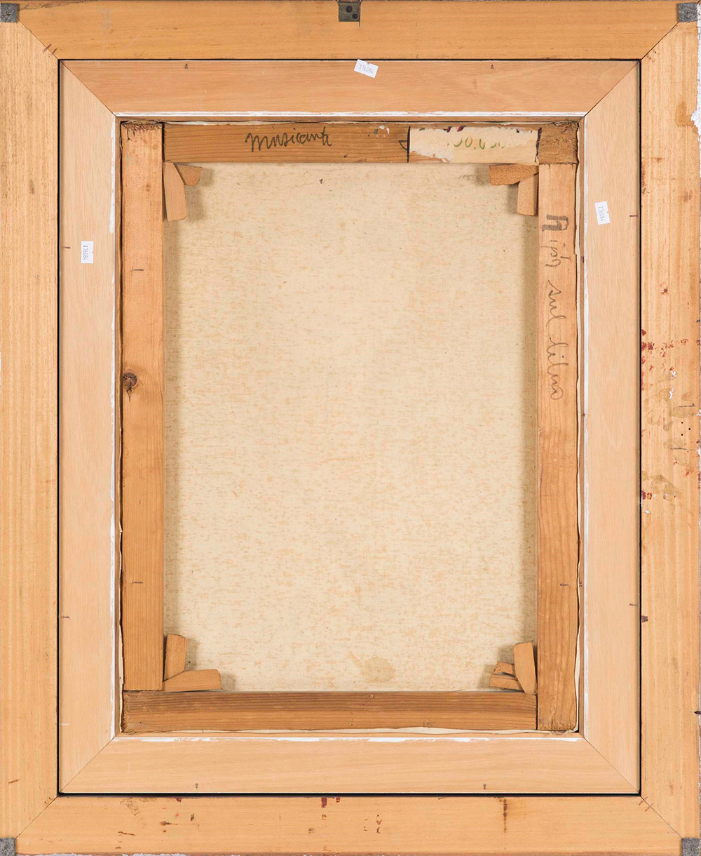 Pompeo Borra (1898-1973) Musicante olio su tela, cm 40x30 firmato in basso a sinistra Autentica su fotografia a cura di Filippo Caracciolo Borra, in data 22 marzo 1975 Provenienza: Galleria La Cornice, Parma, ivi acquistato dall’attuale proprietario l’opera si presenta in buono stato conservativo Pompeo Borra (1898-1973), Musician oil on canvas, cm 40x30 signed lower left Photo certificate by Filippo Caracciolo Borra, 22/03/1975