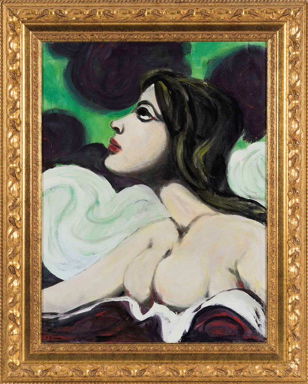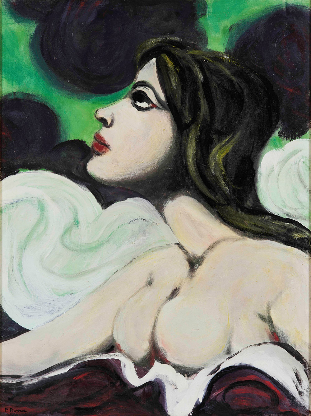 Pompeo Borra (1898-1973) Donna tra le nubi olio su tela, cm 80x60 firmato in basso a sinistra firmato al retro timbrato al retro Galleria La Cornice, Parma Provenienza: Galleria La Cornice, Parma, ivi acquistato dall’attuale proprietario l'opera si presenta in buono stato conservativo Pompeo Borra (1898-1973), Woman through the clouds oil on canvas, cm 80x60 signed lower left signed on the back Label of Galleria La Cornice, Parma on the back