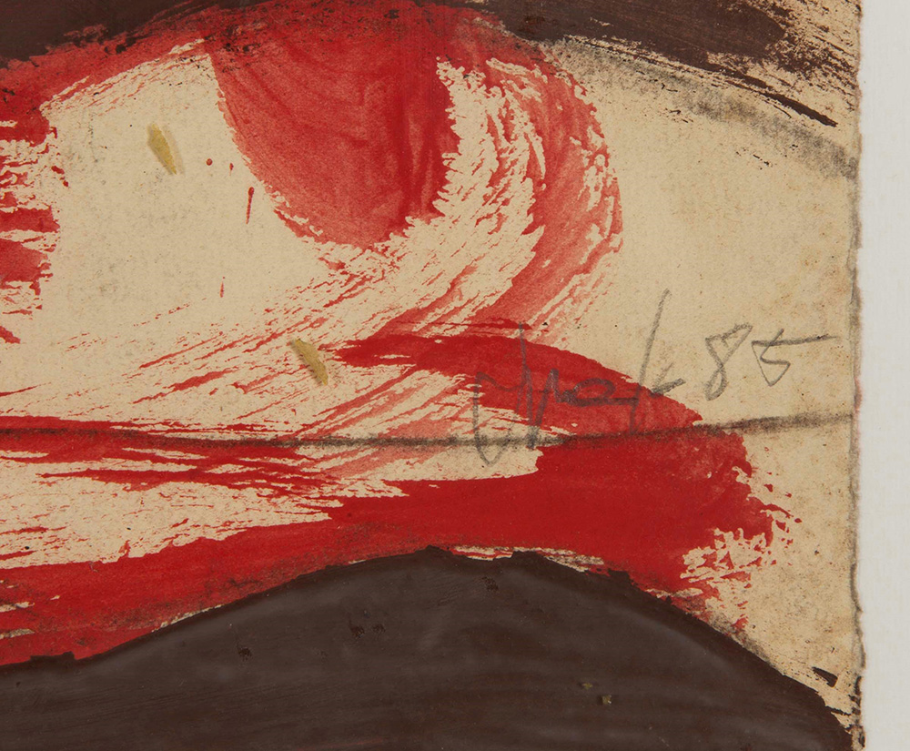 Giuseppe Spagnulo (1936-2016) Senza titolo, 1985 tecnica mista su carta, cm 75x53 firmato e datato in basso a destra Autentica su fotografia dell’artista Provenienza: Collezione privata, Milano Giuseppe Spagnulo (1936-2016), Untitled, 1985 mixed media on paper, cm 75x53 signed and dated lower right Photo certificate signed by the artist