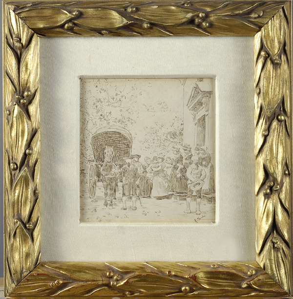 Raffaello Sorbi (Firenze, 1844 - 1931) Festa per la Comunione China su carta, cm. 13x12,5 Firma in basso a destra.