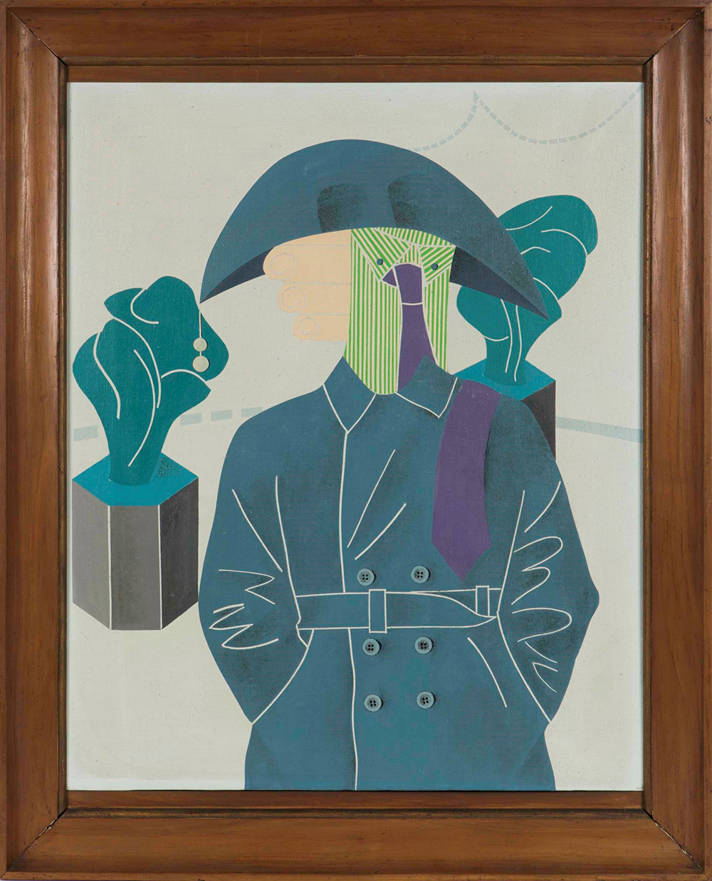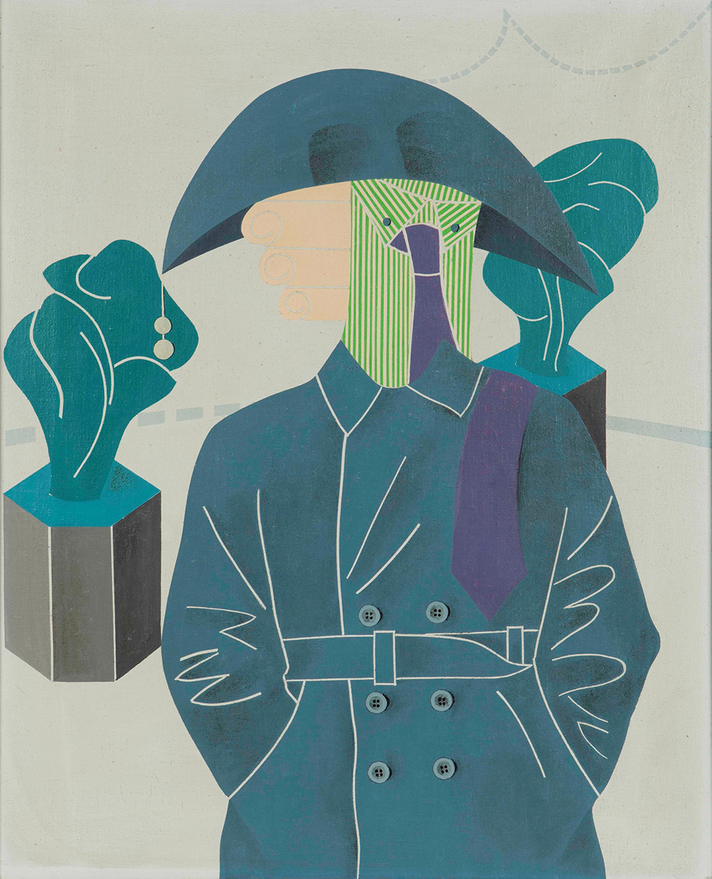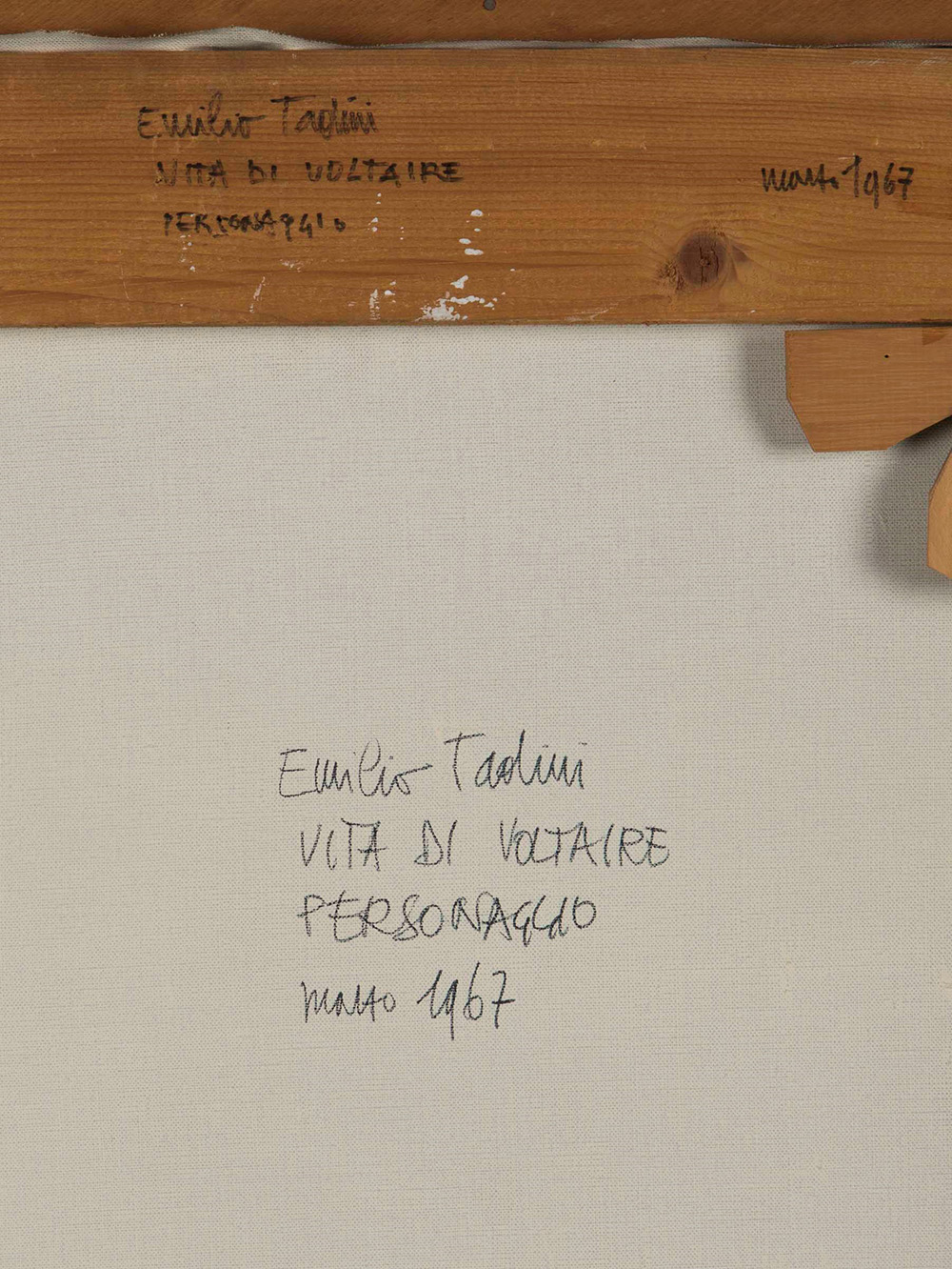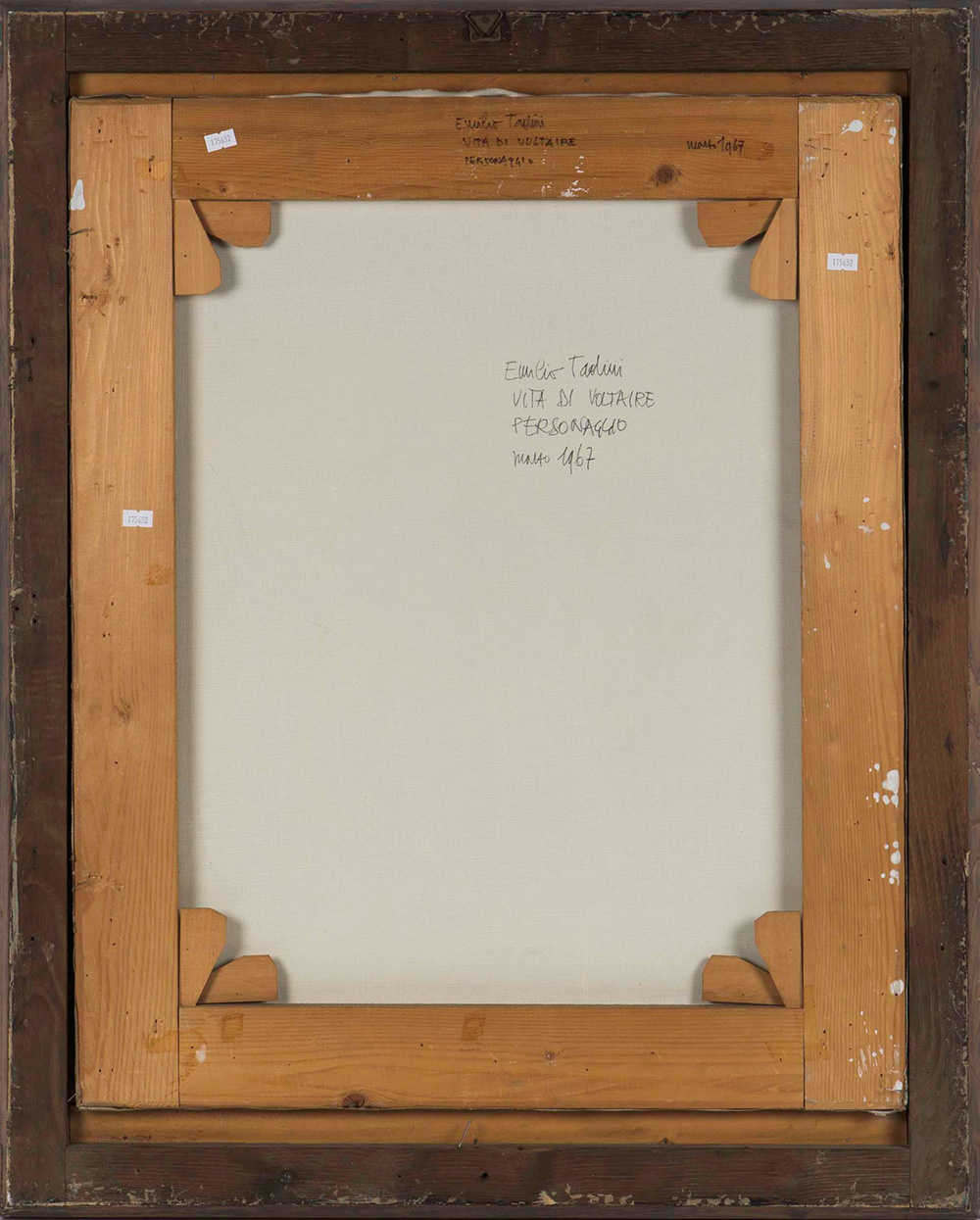 Emilio Tadini (1927-2002) Vita di Voltaire. Personaggio, 1967 olio su tela, cm 73x59 firmato, intitolato e datato al retro Provenienza: Collezione Osvaldo Guggenberg, Milano, ivi acquistato dall’attuale proprietario l'opera presenta una patina di sporco Emilio Tadini (1927-2002), Vita di Voltaire. Personaggio, 1967 Oil on Canvas Cm 73 x 59 Signture on the back
