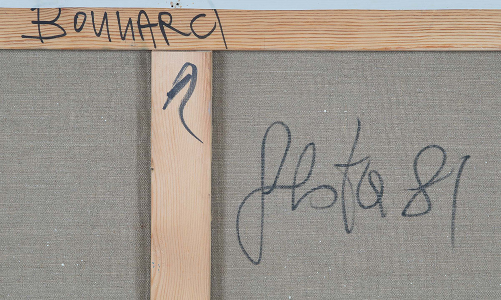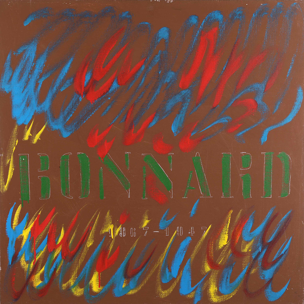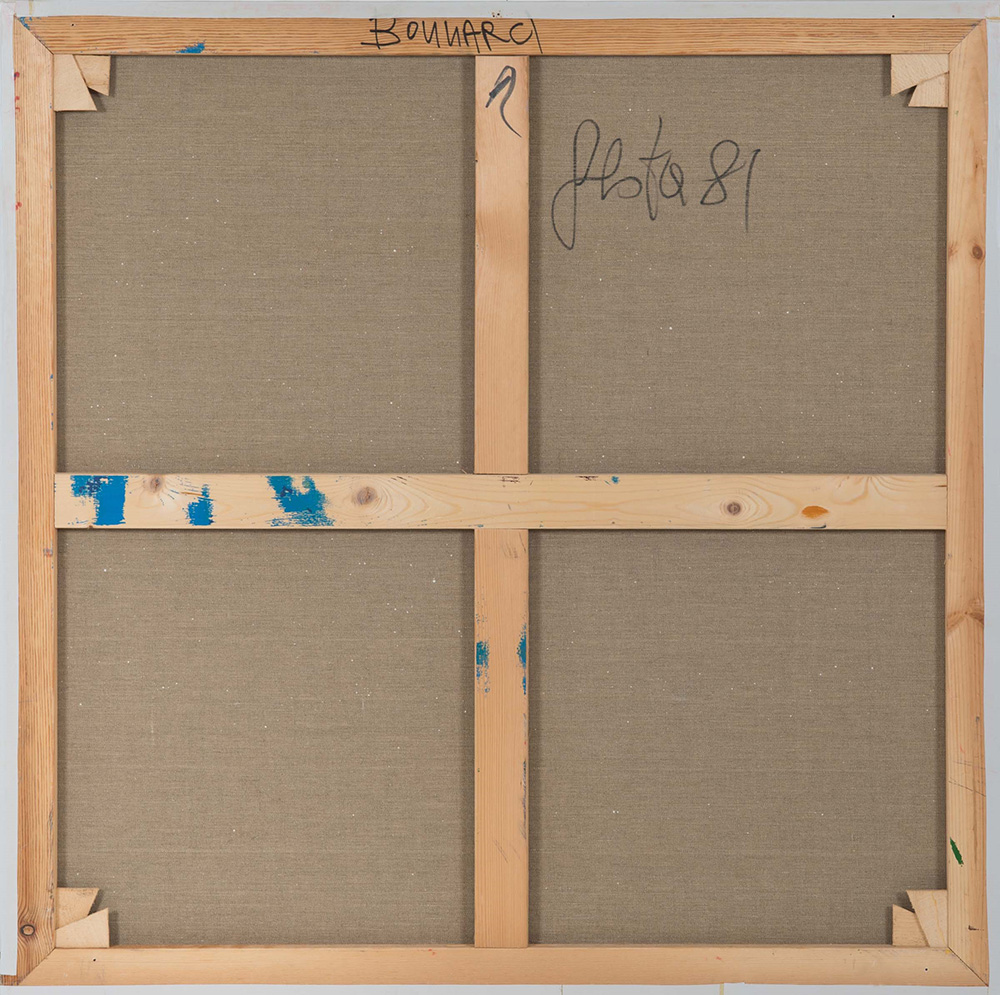 Tano Festa (1938-1988) Bonnard, 1981 olio su tela, cm 100x100 firmato e datato al retro Opera registrata presso l'Archivio Generale dell'Opera di Tano Festa, a cura di Anita Festa, con il n. B1668/1880 Provenienza: Galleria Francesco Masnata, Genova, ivi acquistato dall’attuale proprietario negli anni ‘80 Tano Festa (1938-1988), Bonnard, 1981 Oil on Canvas Cm 100 x 100 Work registered at Archivio Generale Tano Festa, a cura di Anita Festa Signature on the back