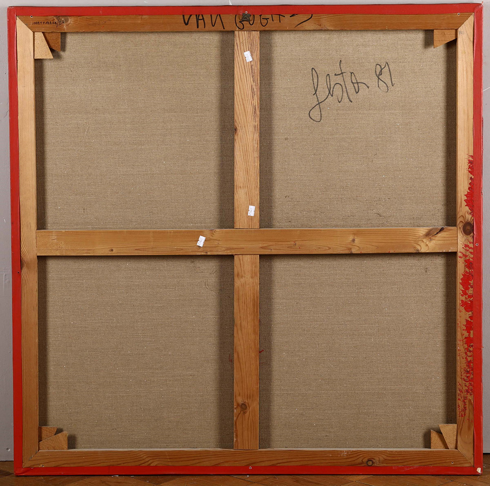 Tano Festa (1938-1988) Van Gogh, 1981 olio su tela, cm 100x100 firmato e datato al retro Opera registrata presso l'Archivio Generale dell'Opera di Tano Festa, a cura di Anita Festa, con il n. B1669/1880 Provenienza: Galleria Francesco Masnata, Genova, ivi acquistato dall’attuale proprietario negli anni ‘80 l'opera presenta sul bordo in alto abrasioni Tano Festa (1938-1988), Van Gogh, 1981 Oil on Canvas Cm 100 x 100 Work registered at Archivio Generale Tano Festa, a cura di Anita Festa Signature on the back