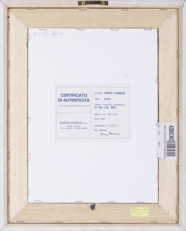 ORFEO TAMBURI (1910-1994)Parigi, 1984Serigrafia polimaterica su lamina...