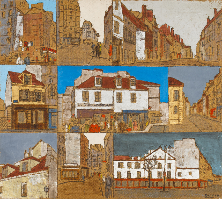 ERNESTO RICOTTI Ricordo di una città, 1980Tecnica mista su tela di jutacm...