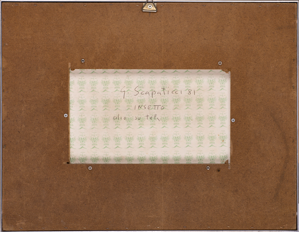 GIULIO SCAPATICCI (1933-2006)Insetto, 1981Olio su cartone telatocm 20x30Firma...