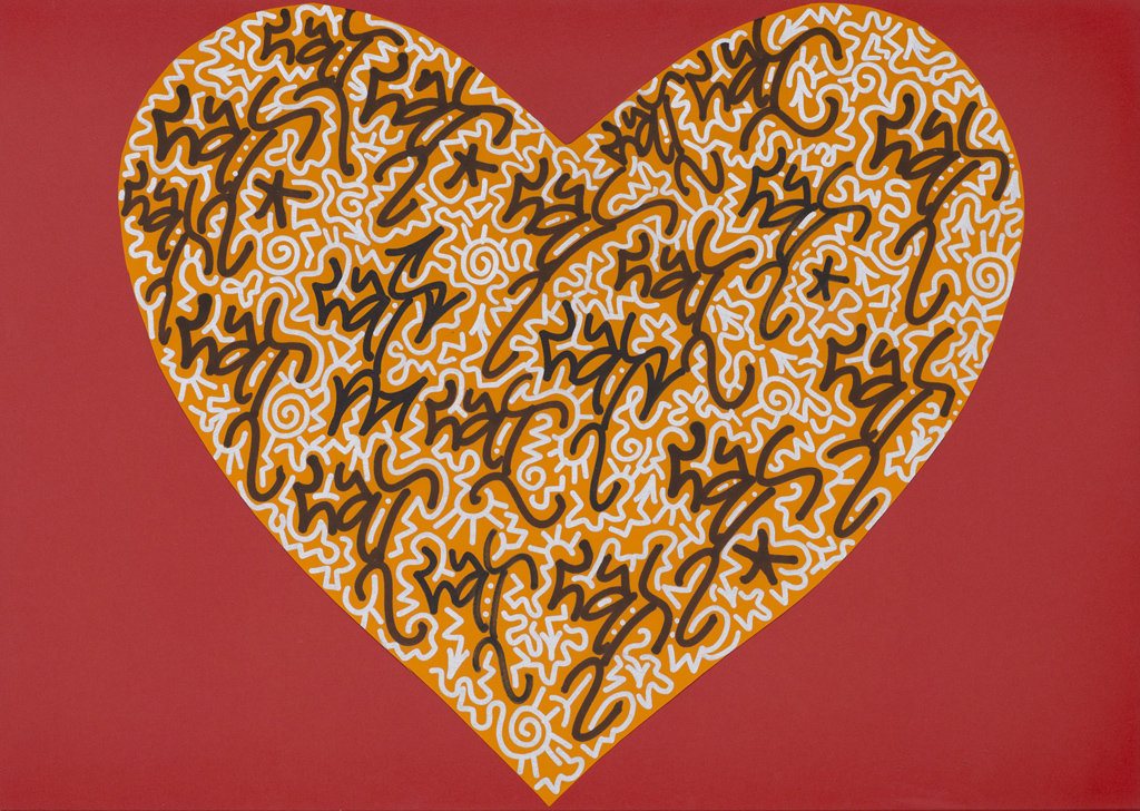 ANGEL ORTIZ (1966)Silver Orange Heart, 2003Tecnica mista e pennarelli su...