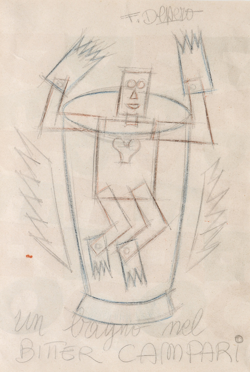 Fortunato Depero (Fondo 1892 – Rovereto 1960) Un bagno nel bitter Campari;Matita e matite col. su carta, 26 x 17,5 cm