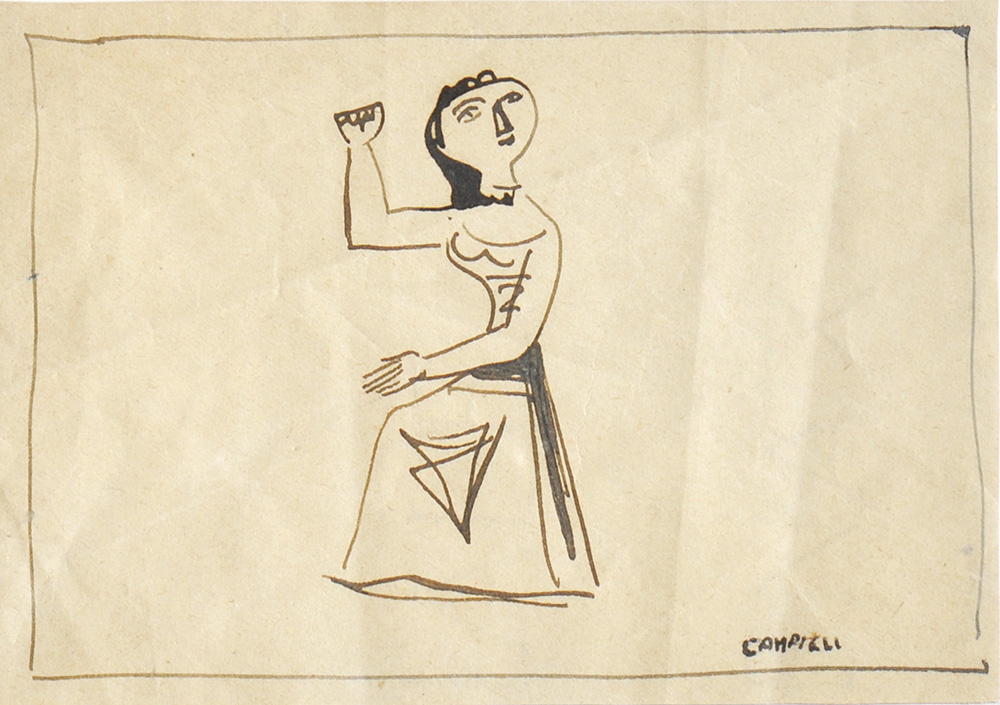 Massimo Campigli (Max Ihlenfeld 1895 – Saint-Tropez 1971) Figura di donna;China, 8,8 x 12,3 cm