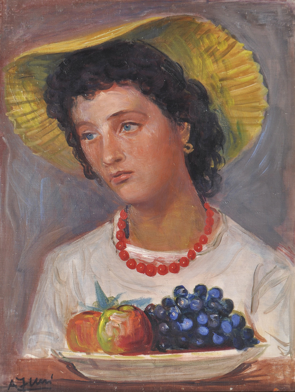 Achille Funi (Ferrara 1890 - Appiano Gentile 1972) Fanciulla, 1950/1952;Olio su tela, 56 x 42 cm, in cornice