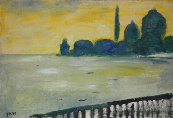 Virgilio Guidi (Roma, 1891 - Venezia, 1984) Venezia Olio su tela, cm. 40x50 Firma in basso a destra e sul verso.