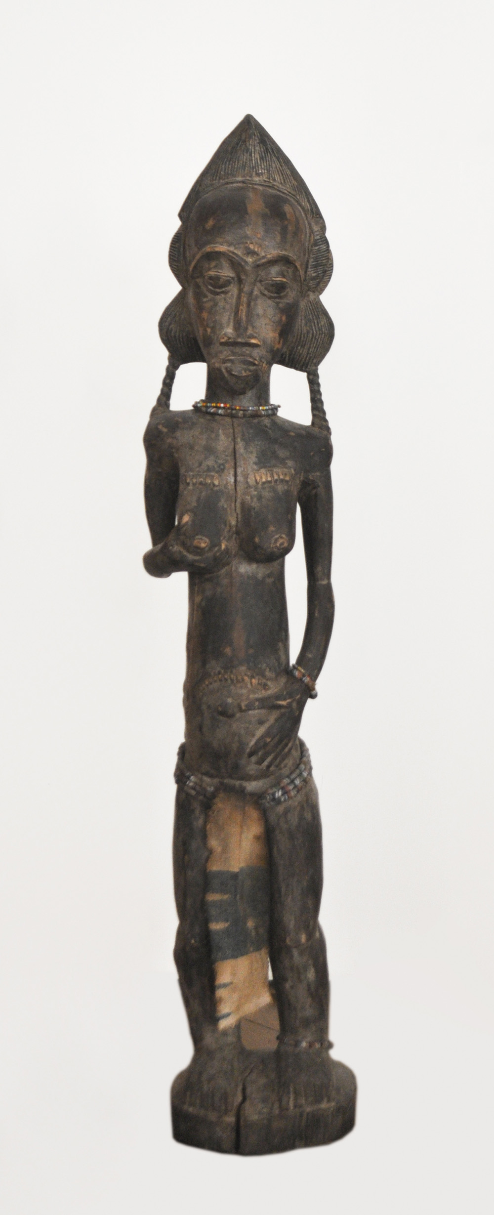 Fruchtbarkeitsgöttin, Benin, 2. Hälfte 19. Jh.;Holz, Stoff, Perlen, Höhe 99 cm, Altersschäden