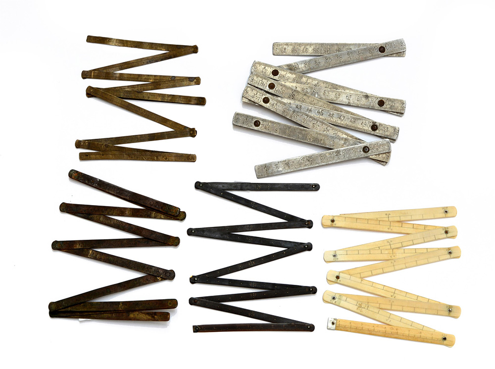 Lotto composto da cinque piccole misure pieghevoli in vari materiali