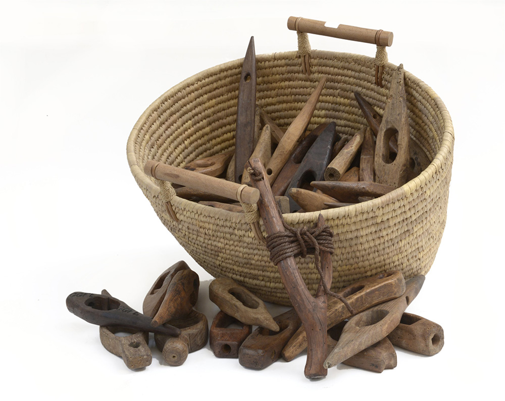 Lot 114 | Cesta contenente ganci vari da fieno in legno-ENA lot of wooden hay clasps