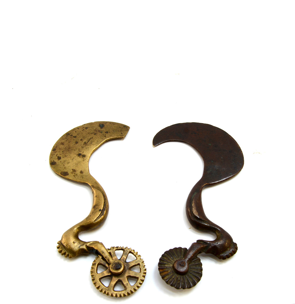 Due speroni da pasta in ottone sagomato (Finlay p 9; Landini p 16)(Difetti)