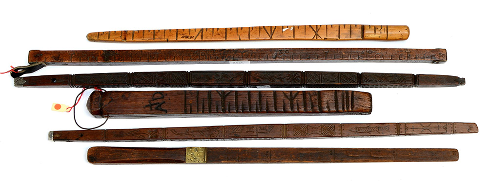 Lotto composto da sei misure in legno, rustiche-ENSix wooden measures