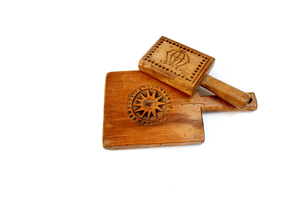 Due palette da burro in legno (difetti)-ENTwo wooden butter stamp. Defects