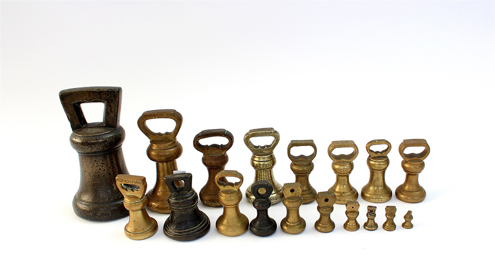 Lotto composto da diciassette pesi inglesi in ottone e bronzo-ENSeventeen...