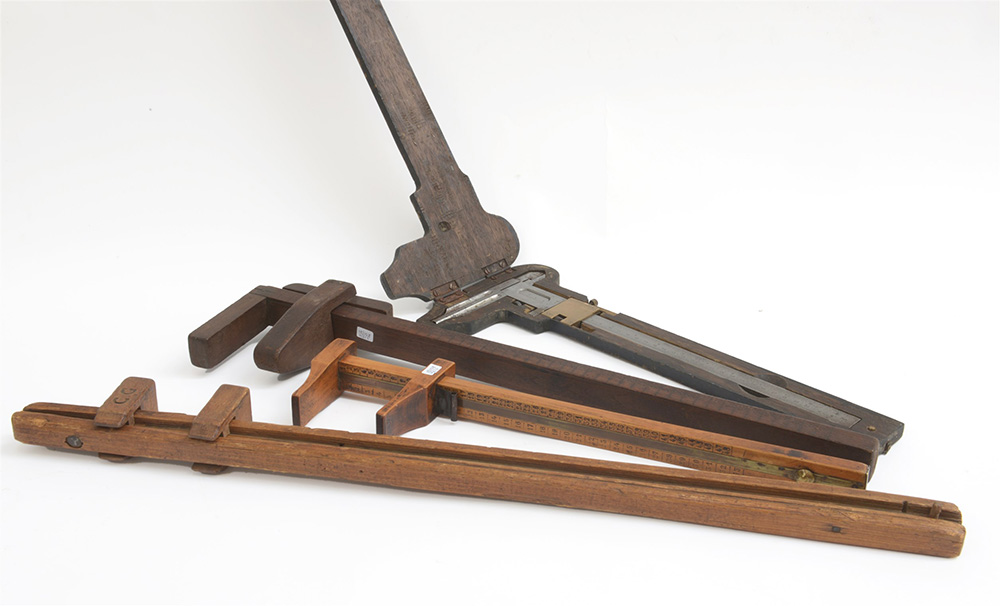 Lotto composto da quattro calibri di cui tre in legno e uno in ferro con...
