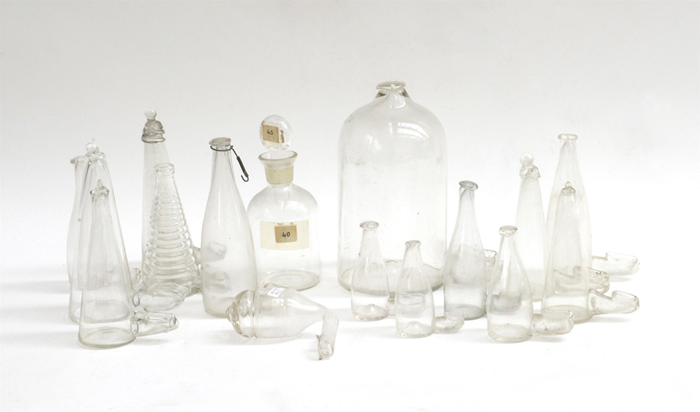 Sixteen various laboratory glassware