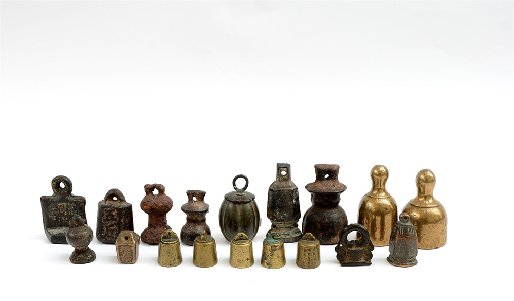 Eighteen metal weights