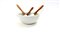 A ceramic mortar with three wooden/ceramic pestles. (defects)