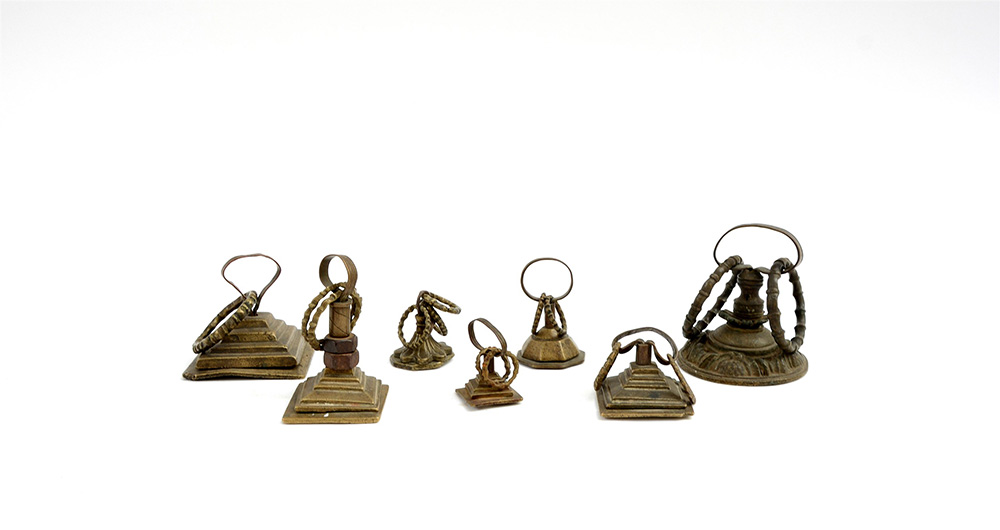 Serie di sette pesi asiatici in ottone
