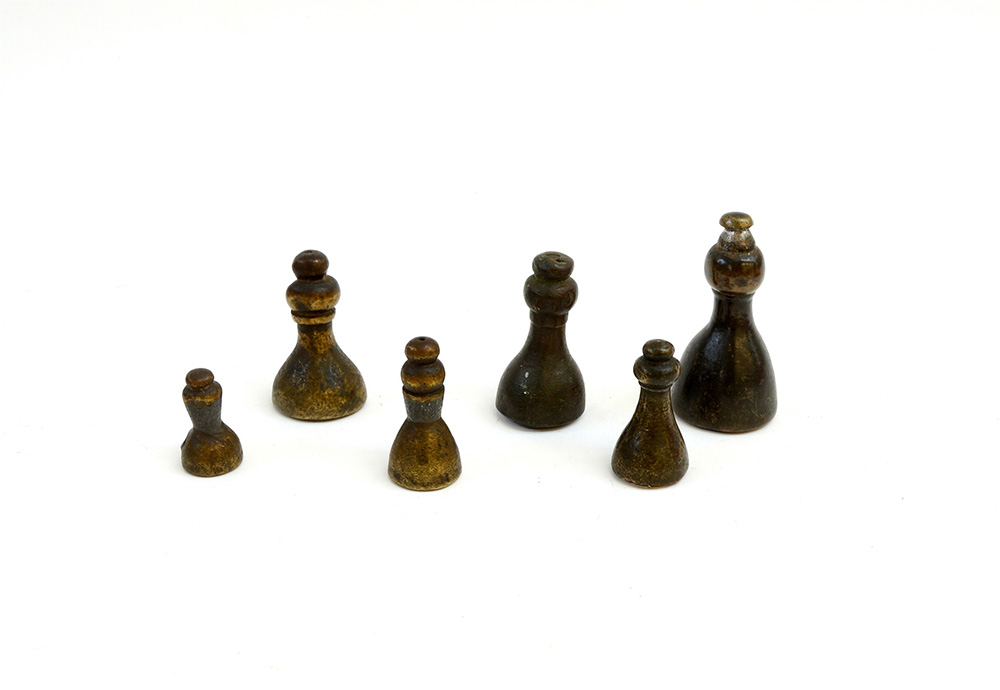 Six sicilian bronze weights (rotoli)