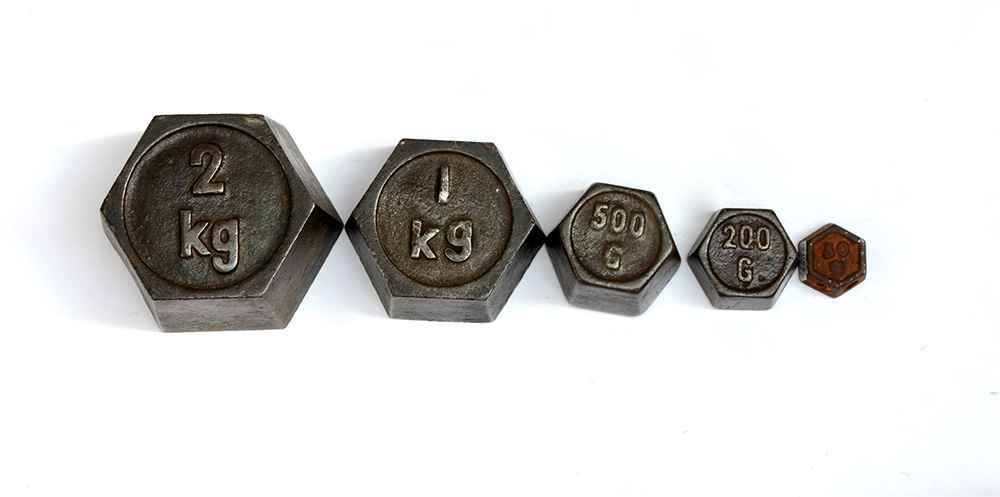 Five exagonal iron weights