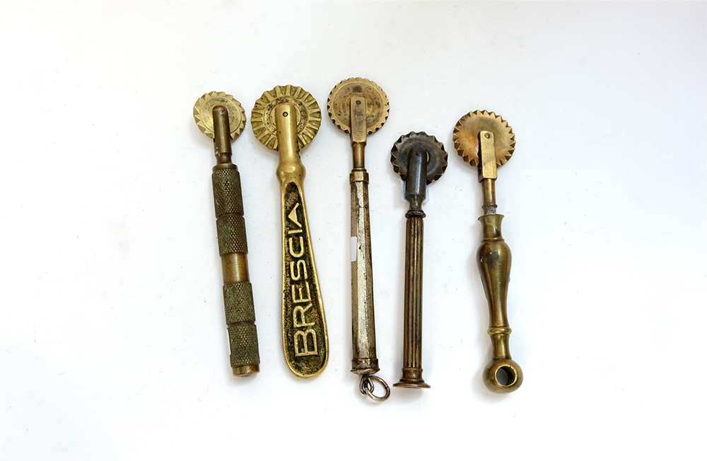 Lotto composto da cinque rondelle da pasta in ottone pieno miste