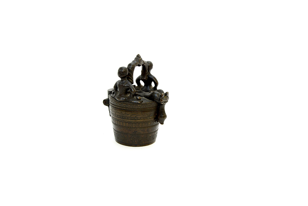 Peso a pila in bronzo con prese figurate (h cm 17ca; d cm 12ca)-ENA bronze...