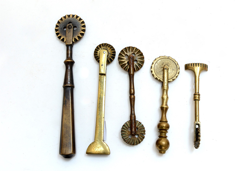 Lotto composto da cinque rondelle da pasta in ottone miste