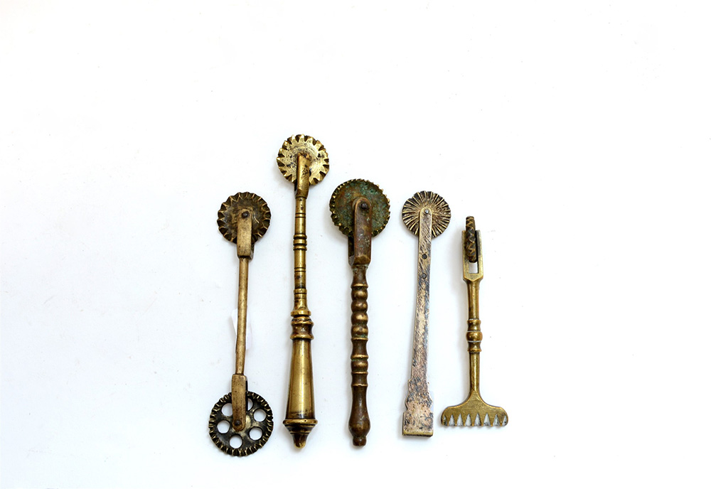 Lotto composto da cinque rondelle da pasta in ottone miste