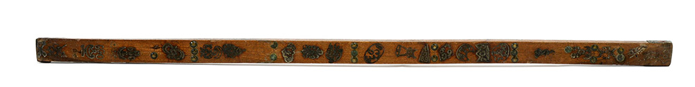 Lotto composto da una misura in legno marchiata con fiori e figure varie