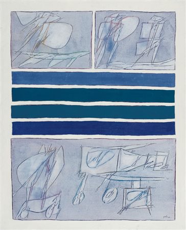 ACHILLE PERILLI Roma 28/01/1927 - La processione di Narciso, 1966, tecnica mista su tela cm. 100x81, firma e anno in basso a destra, titolo, firma, anno ed etichetta della Galleria Marlborough al retro, dichiarazione d'autenticità dell'artista su foto.