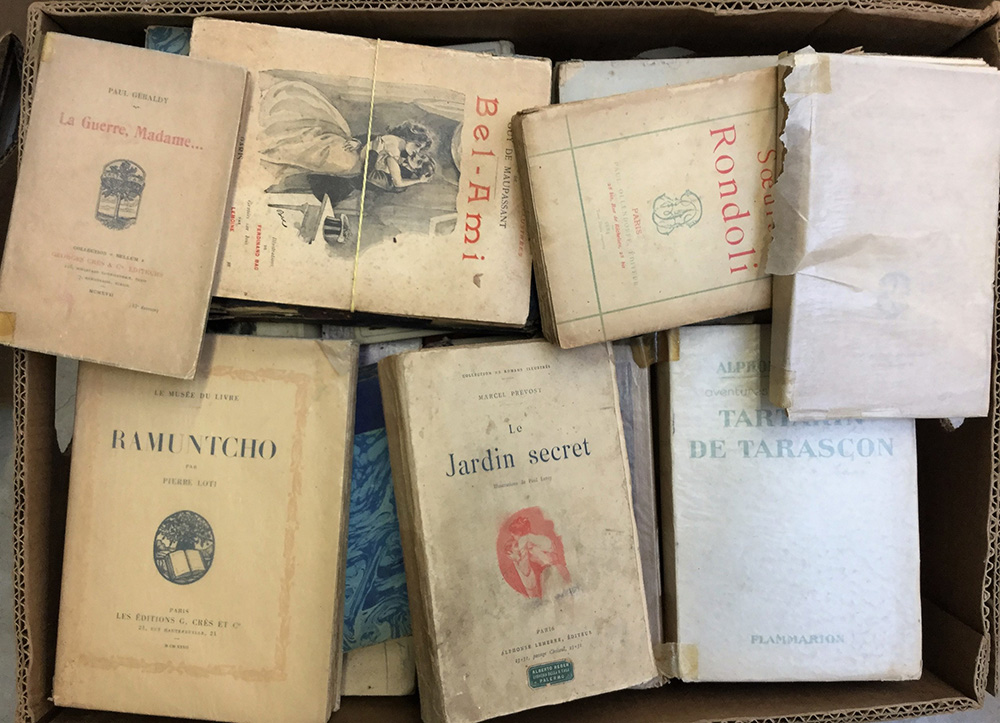 Lotto composto da numerosi volumi di critica letteraria e romanzi della letteratura francese, fra cui ad esempio LOTI, Pierre - Ramuntcho, acquarelles et dessins de Ramiro Arrue. Parigi: Le Musée du Livre, 1927 (lievi difetti). In tre cartoni.