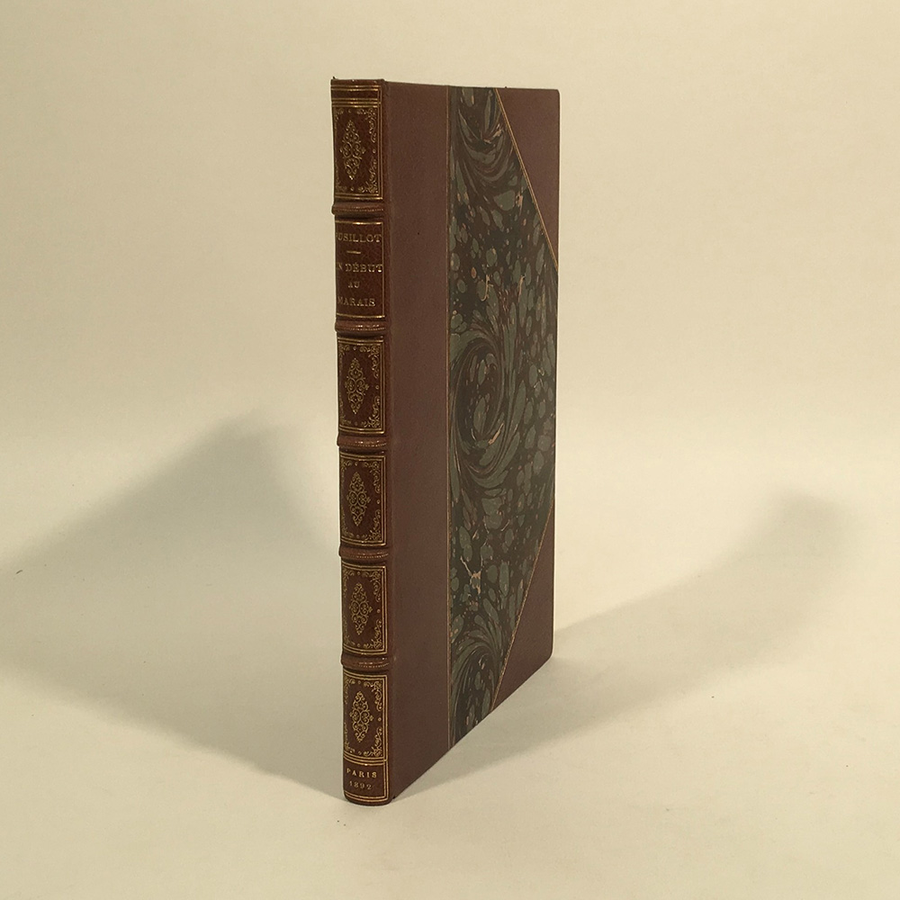 FUSILLOT [Réveilhac, Paul?] - Un début au marais. Parigi: Librarie des amateurs A. Ferroud, 1892. In folio, con delicate illustrazioni. Legatura in mezza pelle, stampata in oro al dorso (lievi difetti).