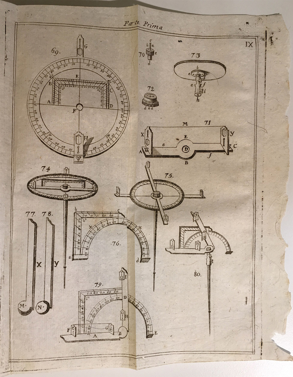 ALBERTI, Giuseppe Antonio - Istruzioni pratiche per l'ingegnero civile, o sia perito agrimensore, e perito d'acque. Venezia: Pietro Savioni, 1782. Vol. in 8vo, con numerose tavole incise fuori testo (fioriture e gore di umidità, tracce di tarli). Legatura in mezza pelle (difetti dovuti all'usura).