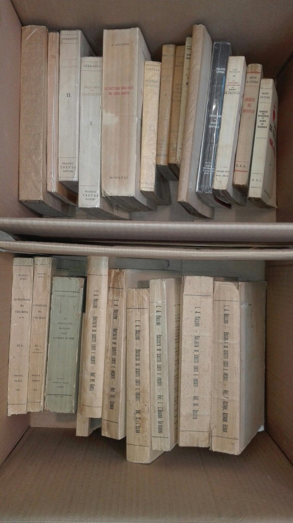 Lotto composto da diverse pubblicazioni relative i diversi aspetti del mondo arabo, fra cui ad esempio la colonizzazione del Vicino Oriente, i seguaci di Maometto e l'Islam. Totale di 24 opere in due cartoni.
