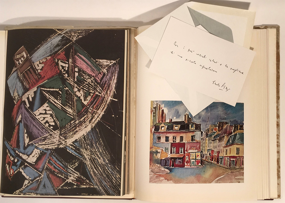 Lotto composto dalle seguenti opere: - ARGAN, Guido Carlo - Umberto Mastroianni. Venezia: Edizioni del Cavallino, 1958. Vol. in 4to, con tavole a colori e in bianco-nero impresse solo al recto riproducenti sculture e disegni dell'artista; esemplare 125. Legatura editoriale in piena tela con titolo in rosso e illustrazione astratta di Mastroianni in oro, sovraccoperta editoriale in acetato trasparente (difetti); RIZZI, Paolo - Masi Simonetti (1903-1969). Venezia: Nuova Editoriale, 1971. Vol. in 4to, con tavole in bianco e nero e a colori; esemplare 132/1000 (con busta contenente dedica autografa di Paolo Rizzi). Legatura e sovraccoperta editoriali (lievi difetti).