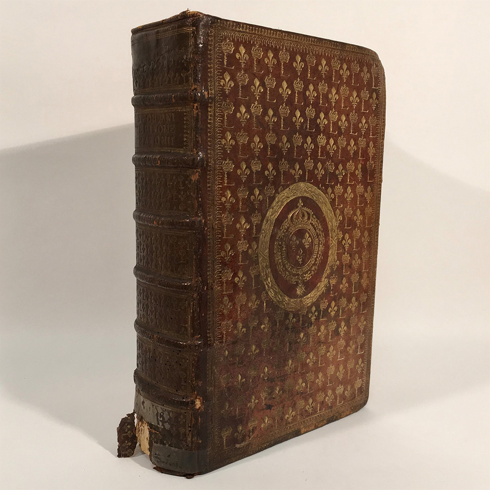 BARONIO Cesare - Enrico MONDANO - Ammalium epitomen. Parigi, s.n. 1639. Due tomi in un volume in folio (segni di tarli diffusi, fioriture, bruniture). Legatura coeva in piena pelle da ricondurre probabilmente alla scuola di Georges Drobet e all'Atellier du relieur dei re di Francia, attivo dal 1539 al 1792 (difetti dovuti all'usura, cuffia e capitelli inferiori gravemente danneggiati o mancanti).