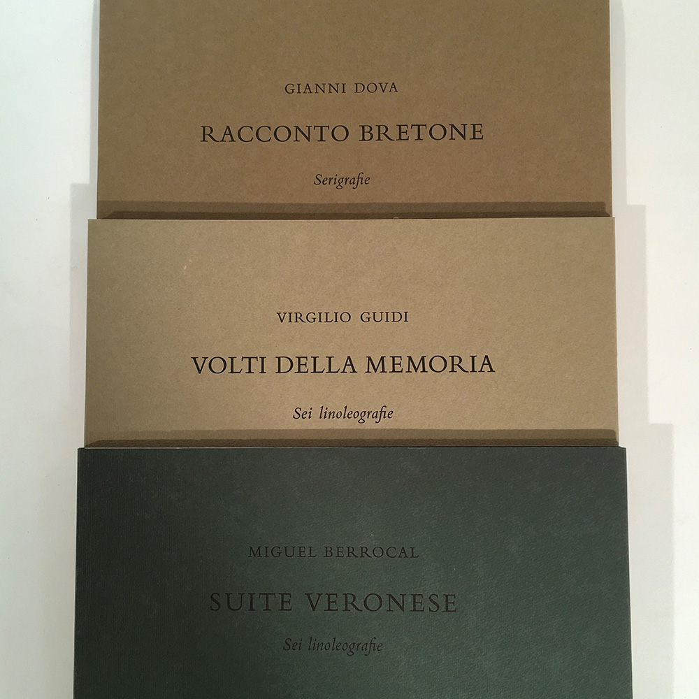 GUIDI, Virgilio - Miguel BERROCAL - Gianni DOVA - Volti della memoria; Suite Veronese; Racconto bretone. Verona: Aux Deux Amis, 1976. 3 volumi sui 6 che compongono l'edizione originale, ciascuno contenente 6 incisioni di tecnica varia. Brossure editoriale cartonate (lievi difetti).