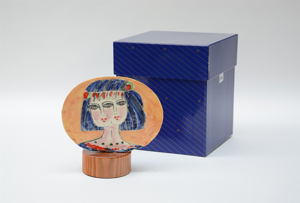 Formella in ceramica dipinta a mano su base in legno Bruno Cassinari con certificato autenticità e scatola originale