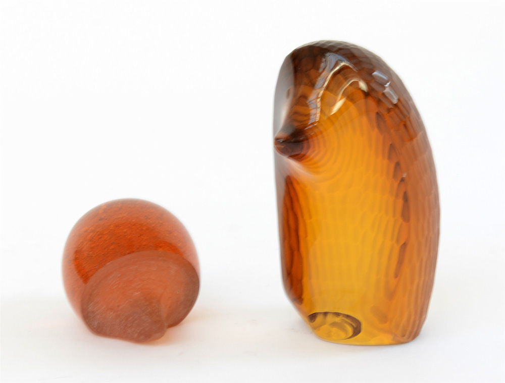 Lotto di due ricci in vetro di manifatture diverse centroeuropee. Secolo XX. (h max cm 13)