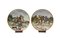 Coppia di grandi piatti istoriati in ceramica dipinti in policromia,...