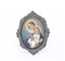 Placca ovale in porcellana dipinta in policromia raffigurante Madonna con bambino (cm 10x7,5)in cornice in argento cesellato (difetti)