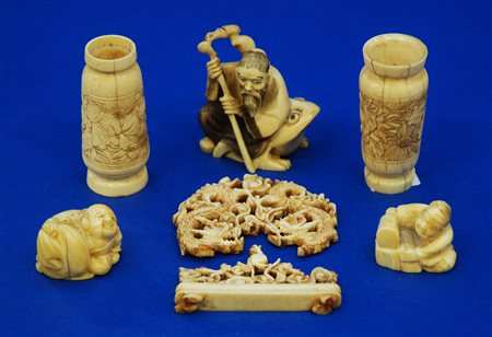 Lotto di sei oggetti in osso e avorio (difetti e mancanze)Varie provenienze,...