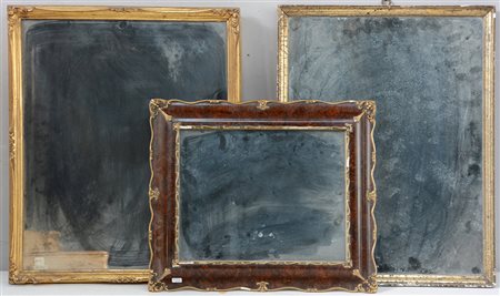 Lotto composto da tre specchiere rettangolari di misure e materiali diversi (difetti)